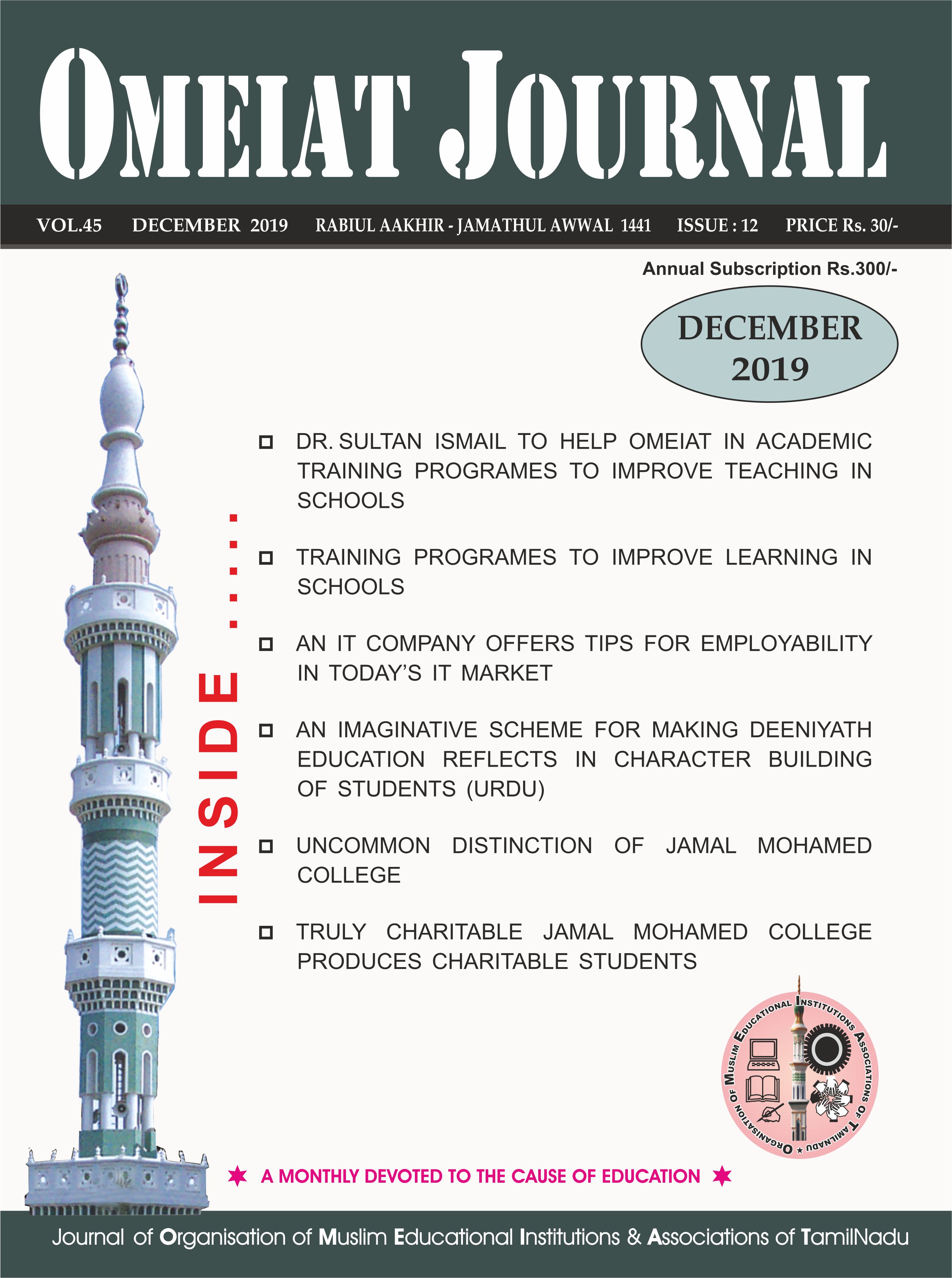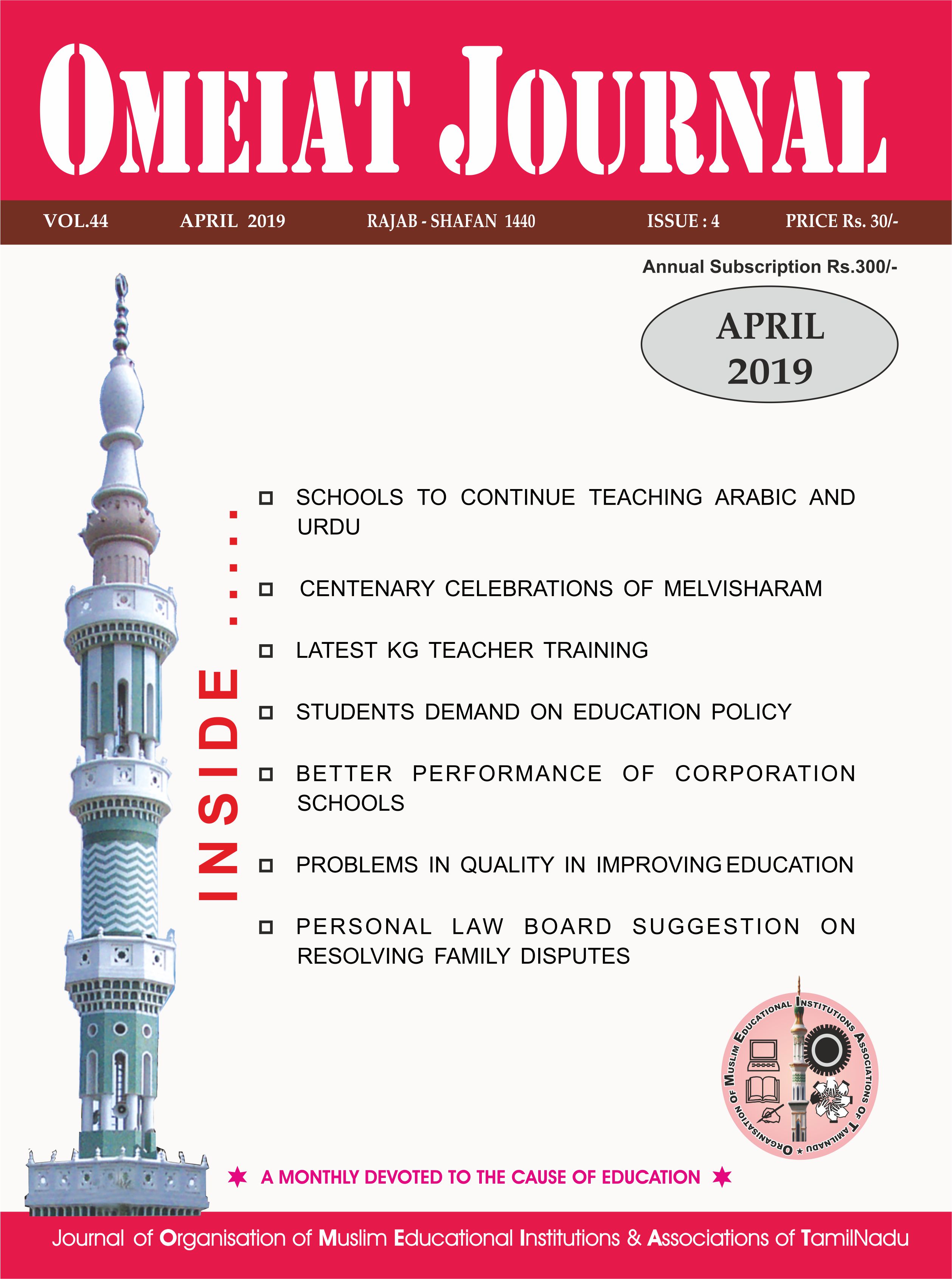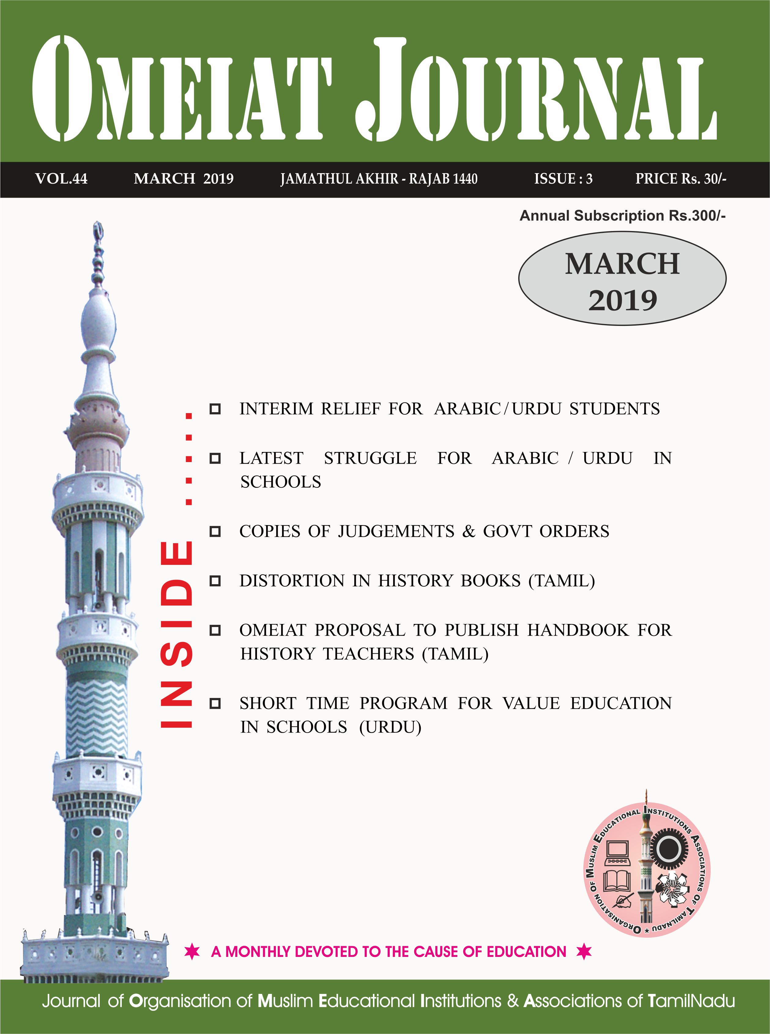 The importance given by our elders to religious education and character building in Muslim schools and colleges is being given in the OMEIAT Journal.