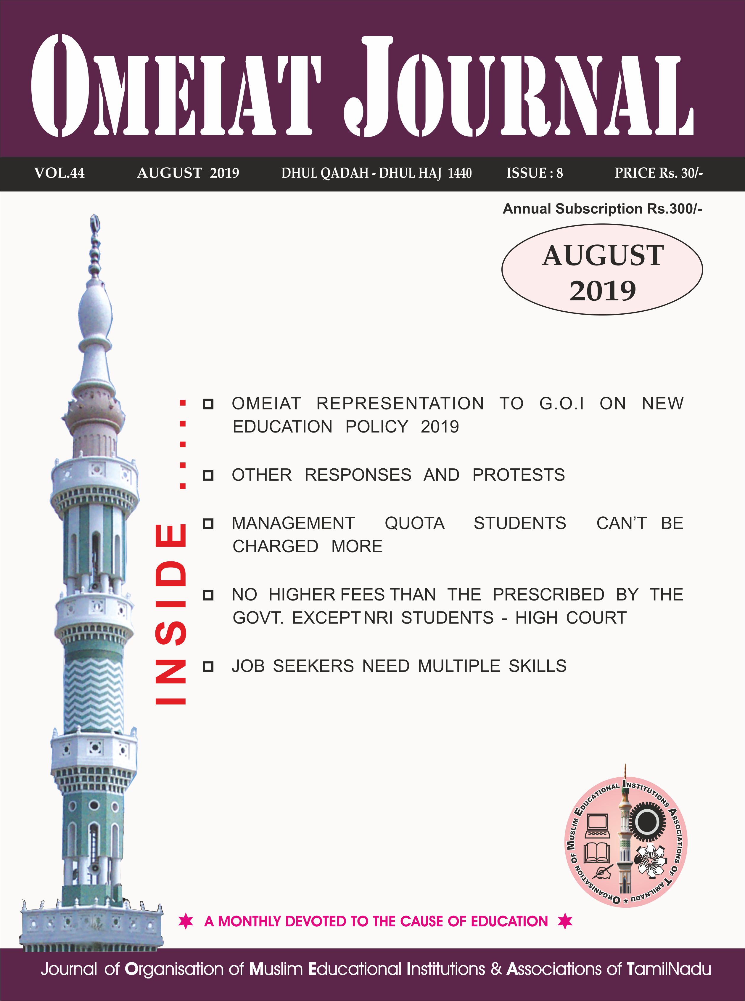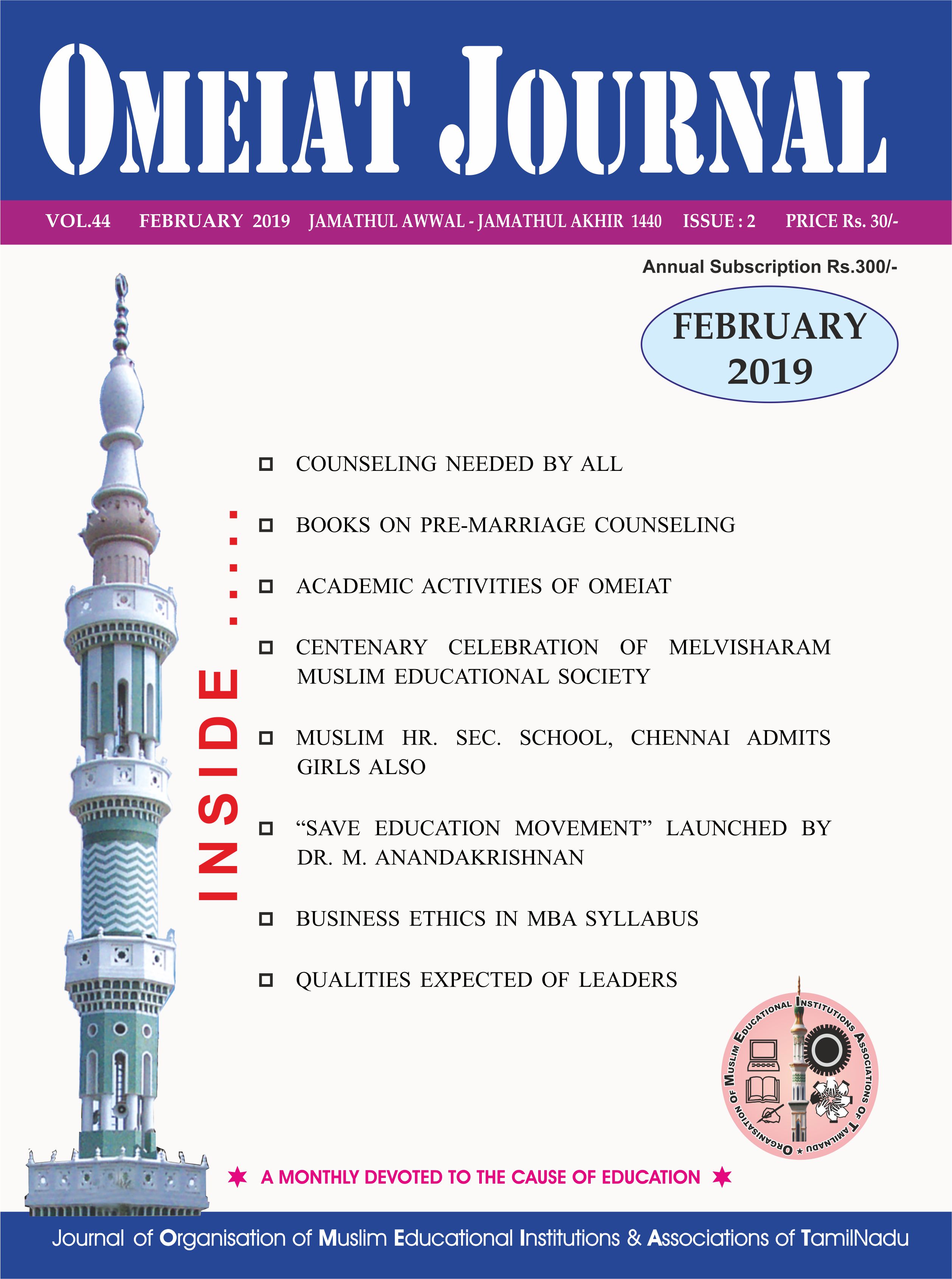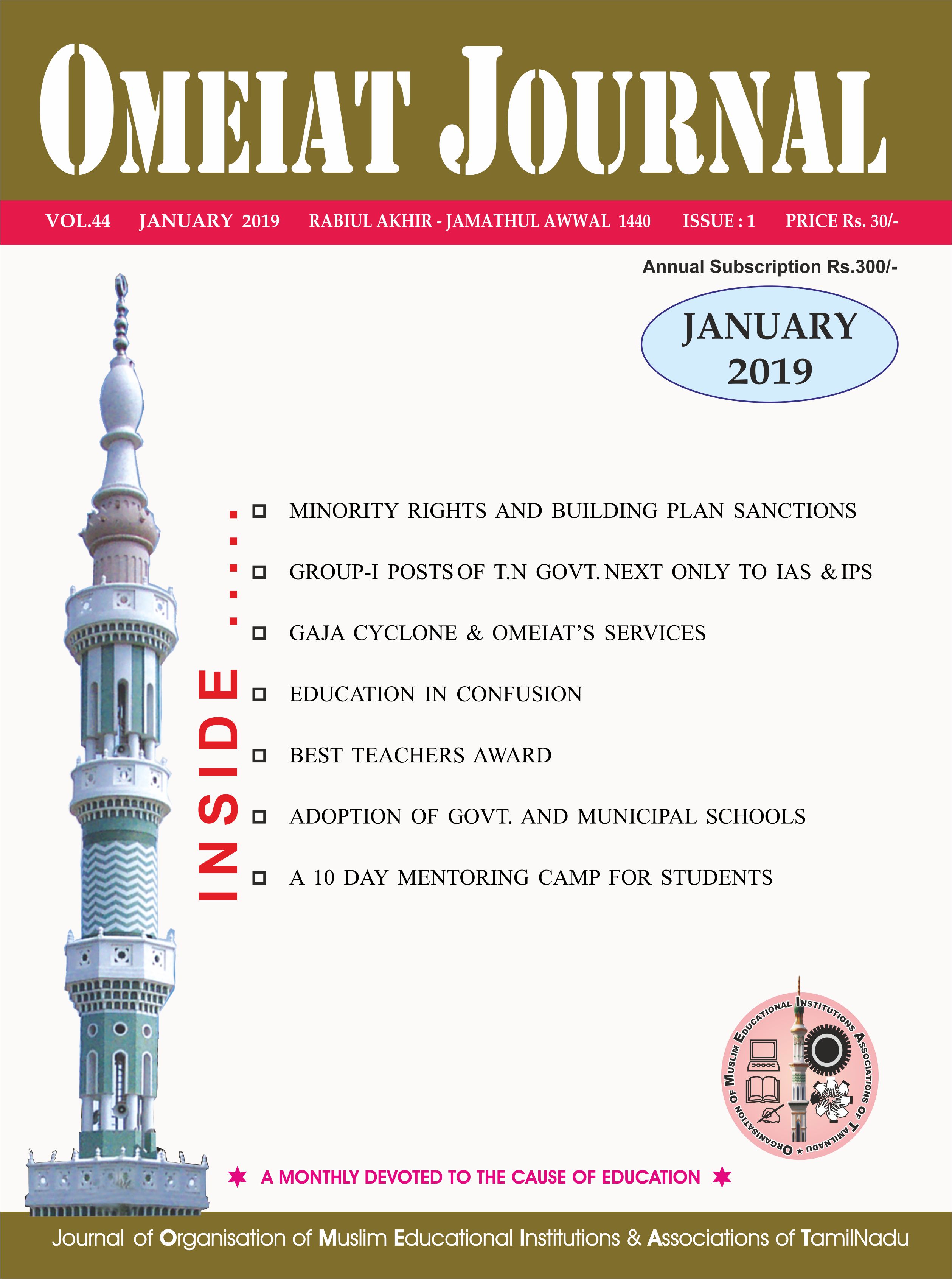 The importance given by our elders to religious education and character building in Muslim schools and colleges is being given in the OMEIAT Journal.